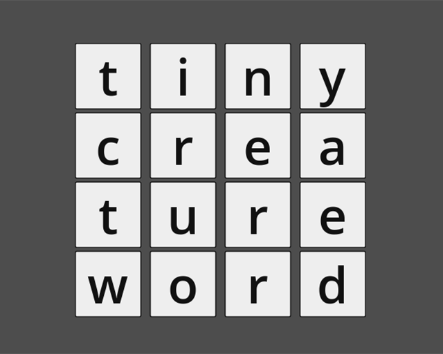 Ludum Dare 56 with the theme "Tiny Creatures" - spin the columns to spell words that match the theme.